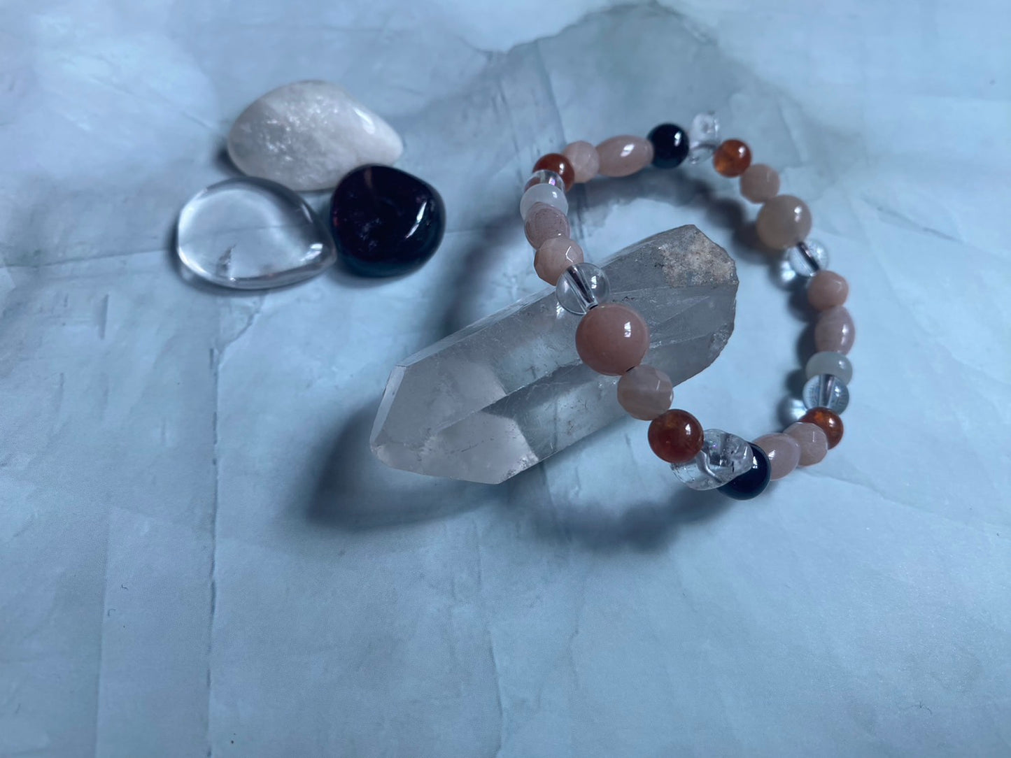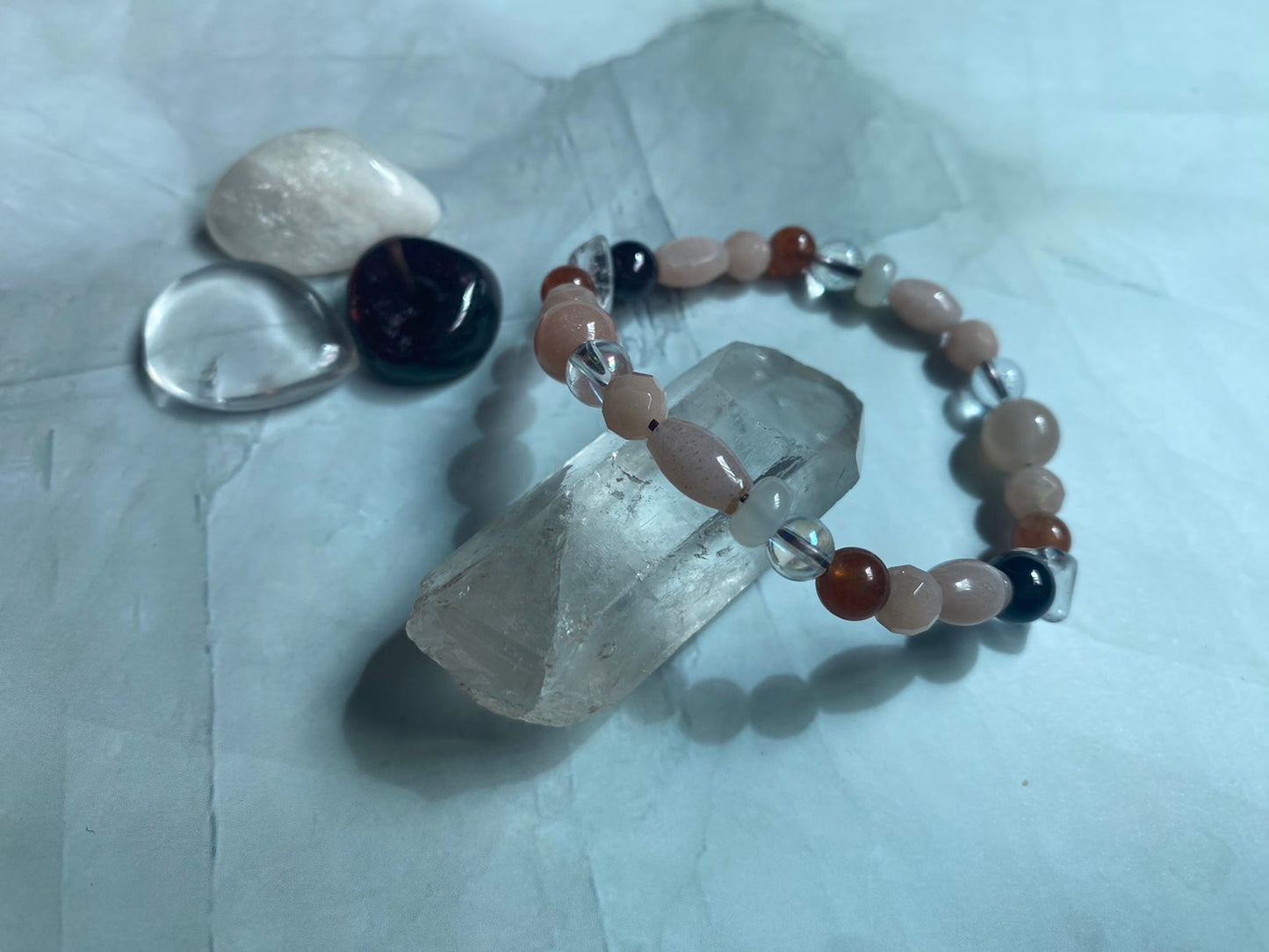 ムーンストーン・ガーネット・水晶入りブレスレット